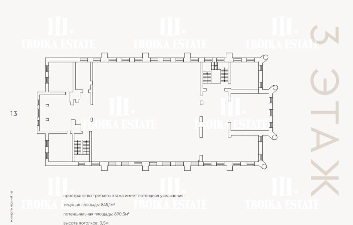 3 299,8 м² (3 этажа, подвал, чердак). Потолки - 3,4 м, виды в тихий внутренний двор.