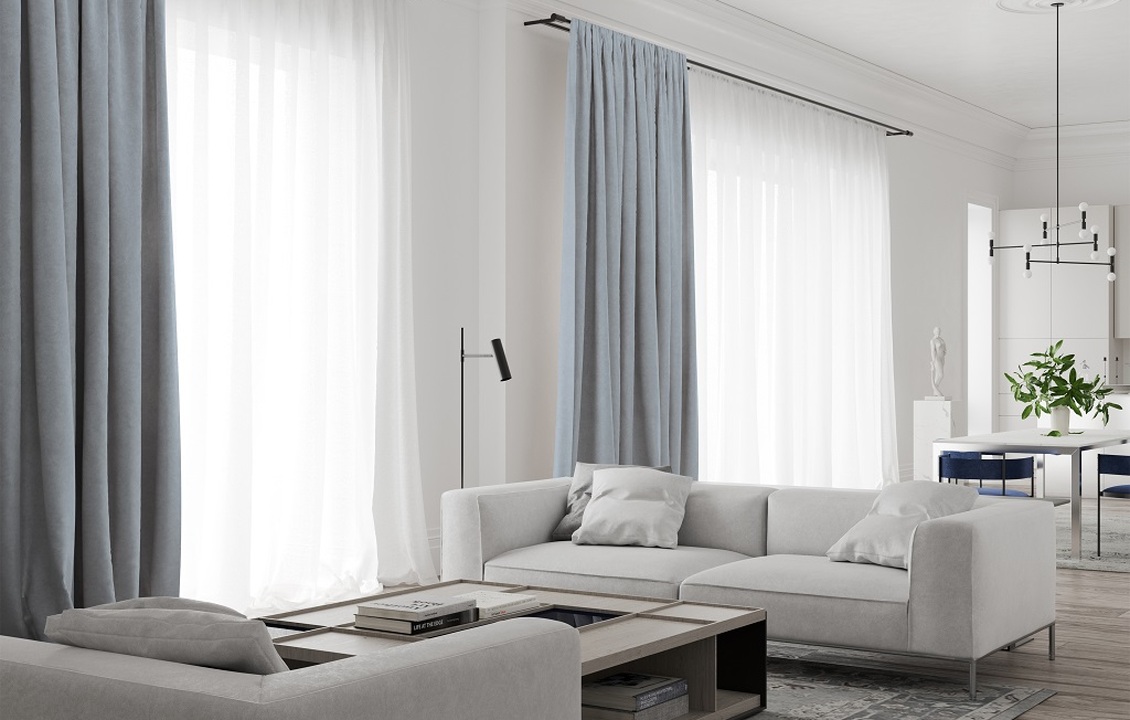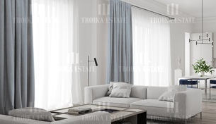 Отделка всех апартаментов осуществляется с применением натуральных материалов: мрамора и ценных пород дерева. Подобраны элегантные детали интерьера и мягкая мебель. На кухне встроена бытовая техника Miele и кухонные модули Rossana. Стены и пол ванных комнат выложены мрамором Pietra Grey, установлен санфаянс Villeroy&Boch и Gessi.
