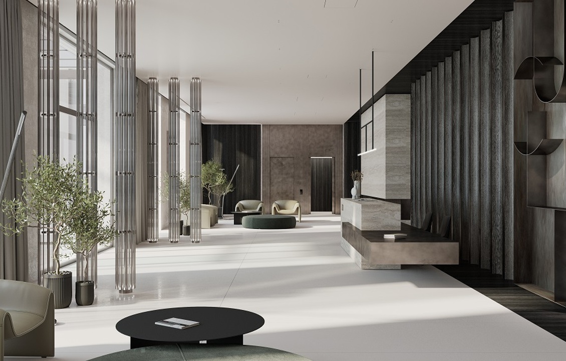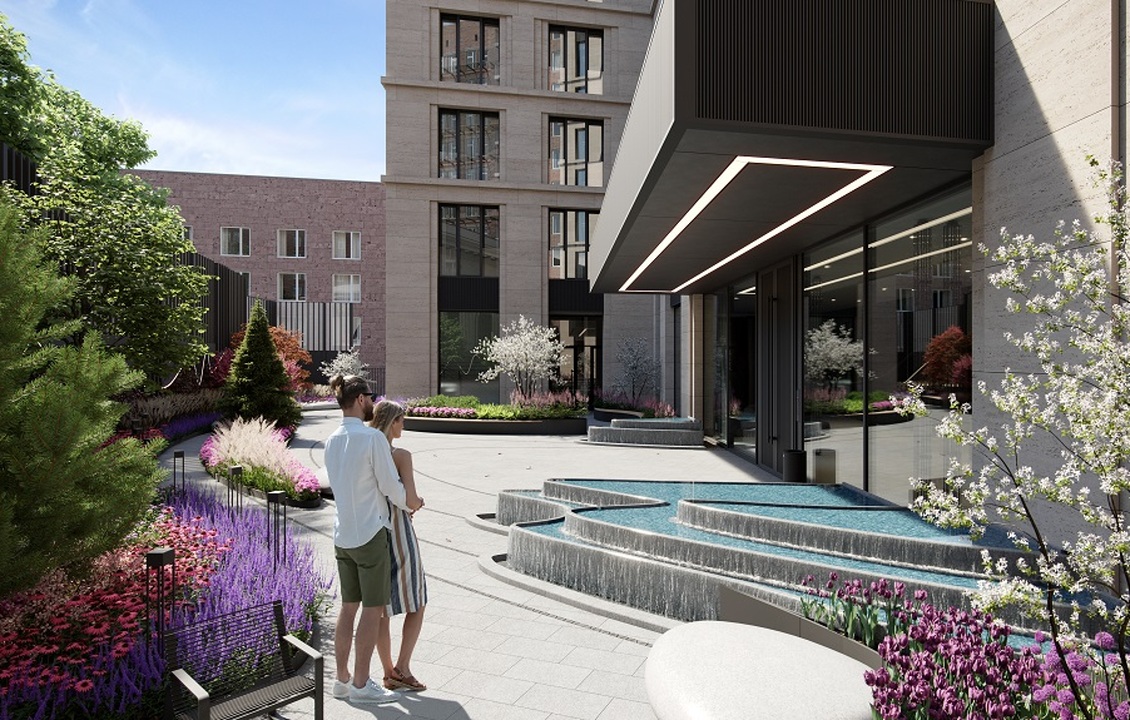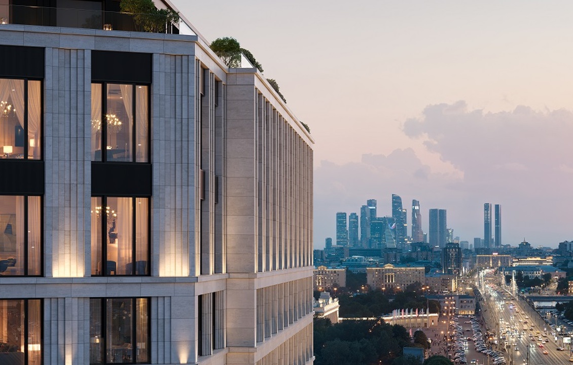 Современная архитектурная концепция от легендарного Сергея Чобана (бюро СПИЧ) и изысканная лаконичность здания органично дополняют сложившийся городской ансамбль. Особую тактильность и выразительность объекту придает облицовка фасада натуральным камнем из Португалии. Проект благоустройства приватного внутреннего двора разработан международной компанией Gillespies – одного из мировых лидеров ландшафтного и городского проектирования.