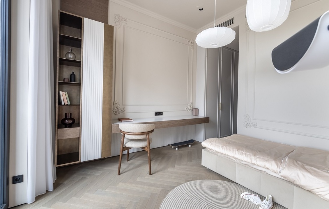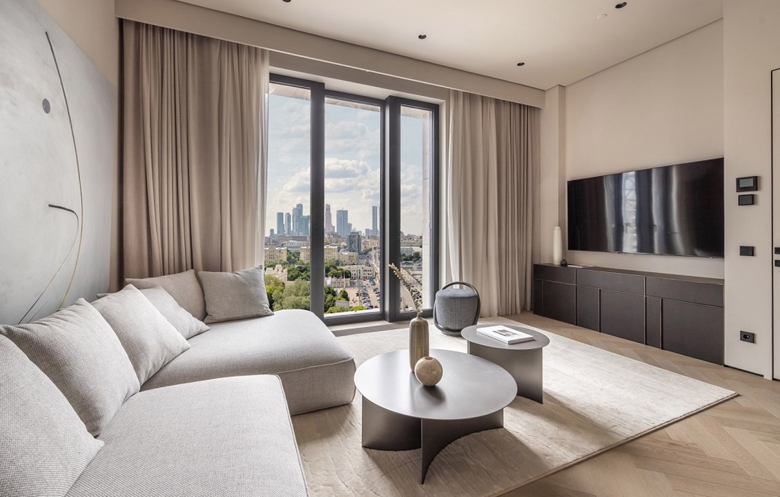Всего в комплексе 80 классических апартаментов с полной премиальной отделкой, оборудованной кухней с итальянской техникой SMEG, а также 8 коллекционных пентхаусов. Апартаменты выполнены в двух стилях – неоклассическом и минимализм, представленных в нескольких цветовых гаммах. У каждого пространства своя индивидуальность за счёт сочетания дизайнерских интерьеров и видовых характеристик.