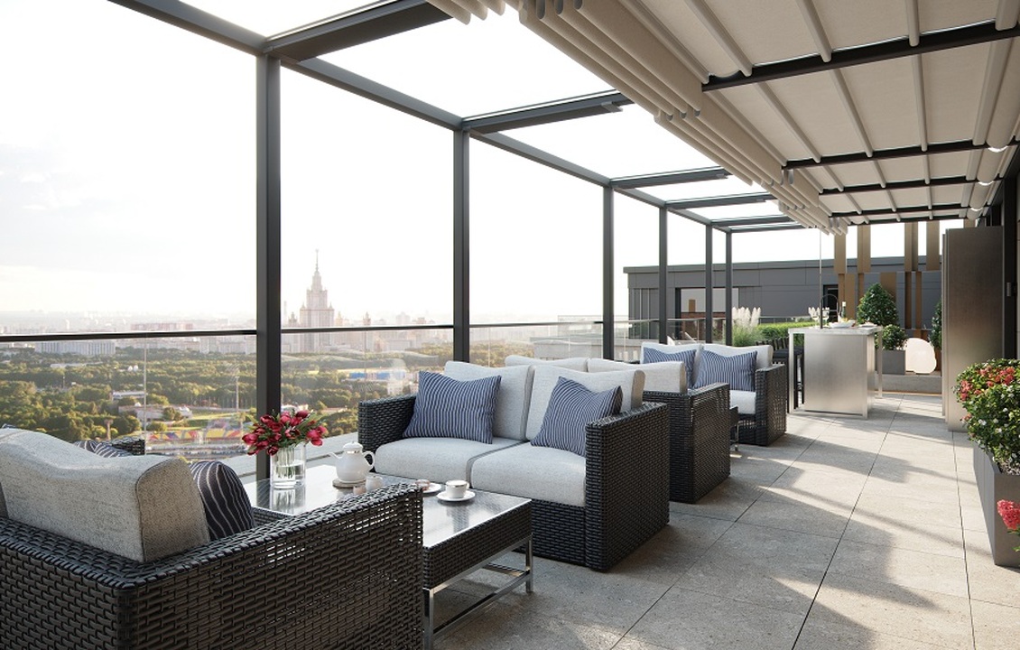 Первый этаж комплекса отведен под ресторан с панорамными окнами и помещения стрит-тритейла. Даже самых взыскательных покупателей порадует наполнение комплекса инфраструктурой. В зоне с приватным доступом будет открыт круглосуточный wellness-центр с фитнесом, зоной SPA, хаммам и бьюти-кабинетами. На кровле устроена общественная видовая терраса c зоной барбекю только для резидентов комплекса.