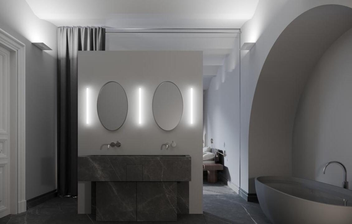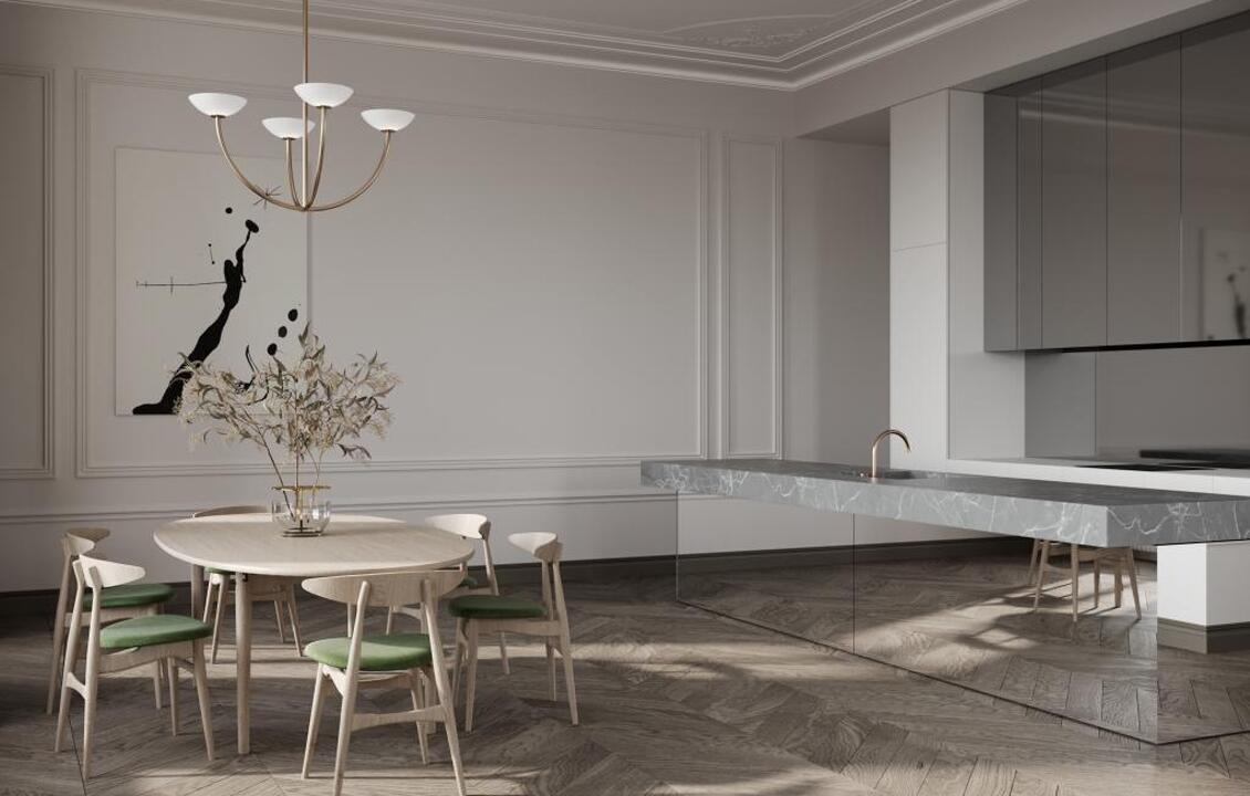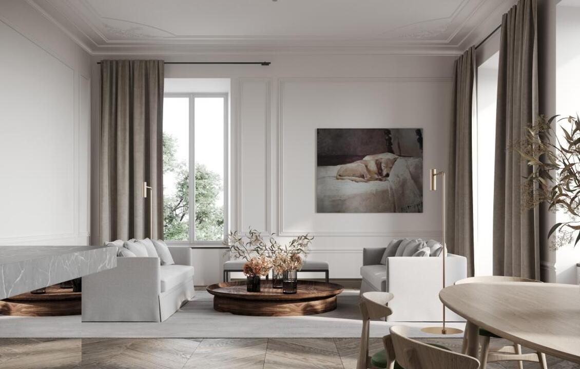 В продажу предлагаются 19 апартаментов площадью от 79 до 313 кв.м., включая 2 пентхауса, отдельностоящую виллу и четыре двухуровневых таунхауса. Все апартаменты в Доме с Атлантами предлагается с высококачественной отделкой в стиле современная классика. Отделка включает полностью оборудованные кухни и ванные комнаты. Четырехэтажная вилла с отдельным входом и террасой имеет 4 жилых уровня и открытую террасу площадью 59 кв.м.