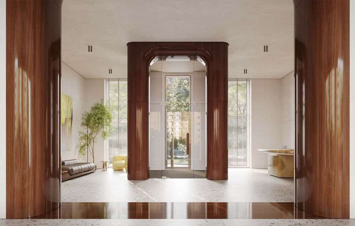 каждом этаже от 2 до 4 квартир. Просторное лобби с потолками 5 метров встречает