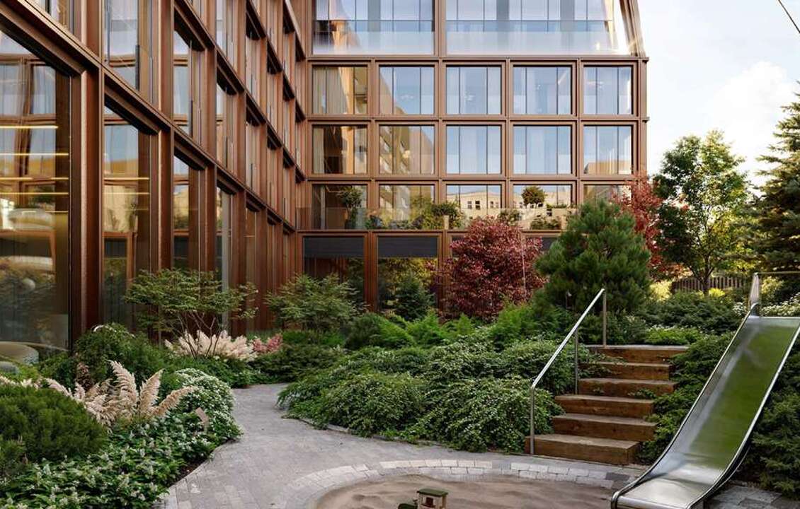 скандинавском стиле. Это приватное зеленое пространство с холмистым рельефом,