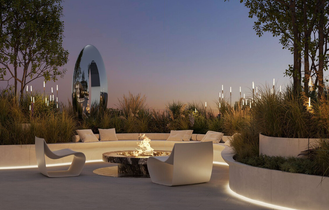 форматов, ландшафтный сад, лаунж-зоны на крыше с панорамными видами и клубную