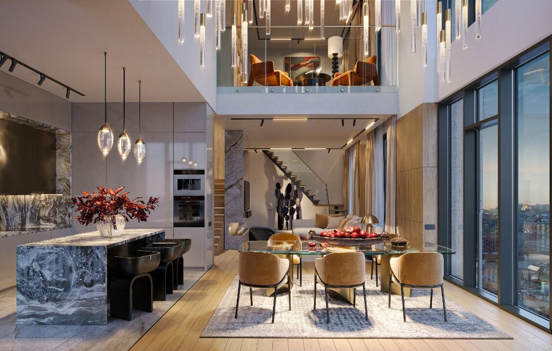 выбор квартир с увеличенной до 7,65 метра высотой потолков, а также пентхаусы с