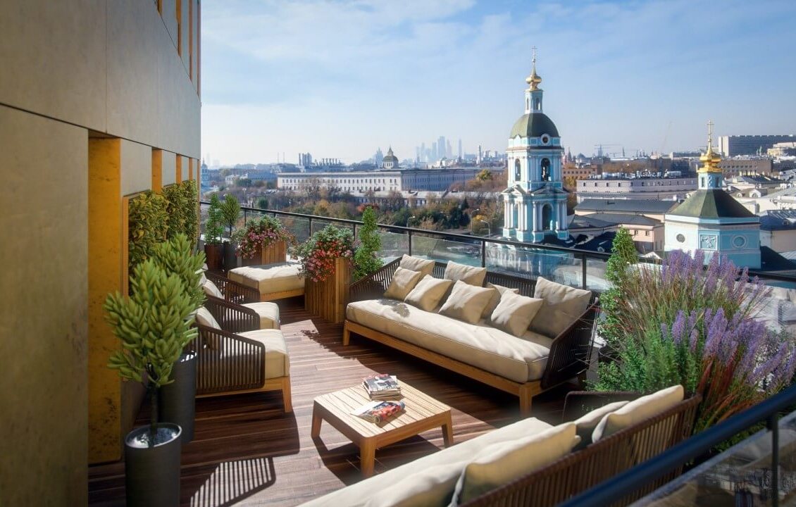 представлены уникальные жилые пространства - это резиденции с террасами, которые обладают прекрасными панорамными видами на центр города и тихие переулки. При