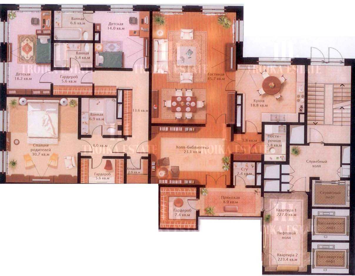 приемов МИД и исторический центр. Предлагается без отделки. Окна выходят на три стороны. Функциональная планировка позволяет сделать просторную гостиную, главную спальню с ванной комнатой и гардеробной, 2 детские