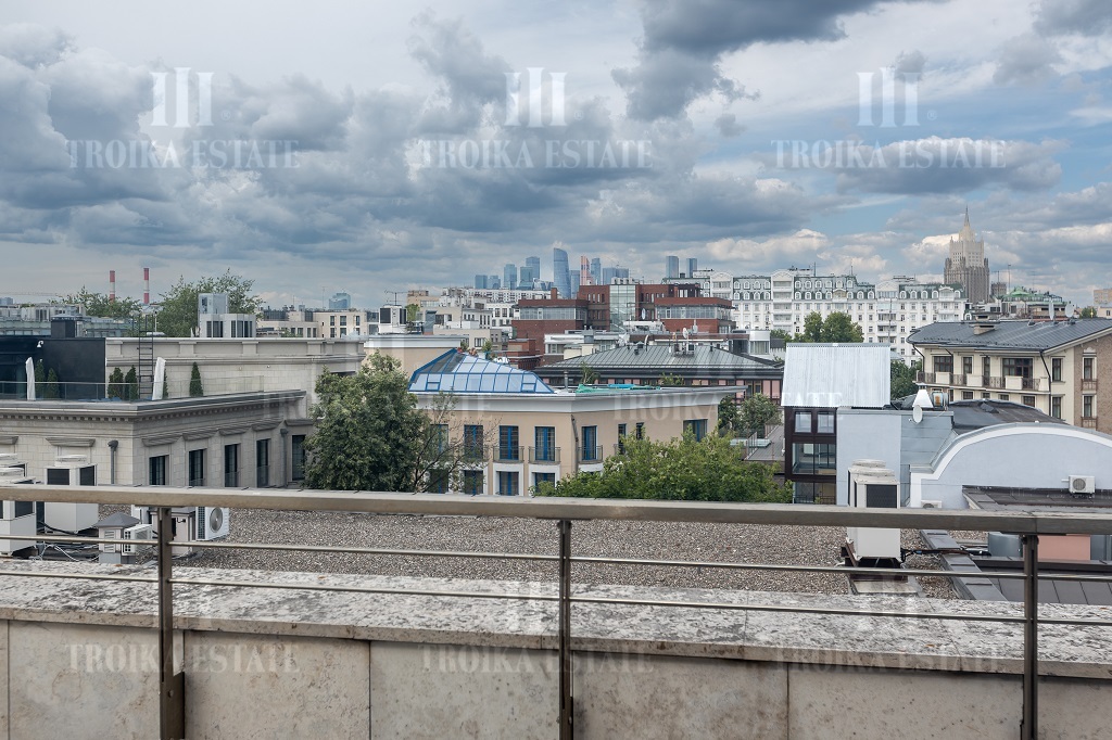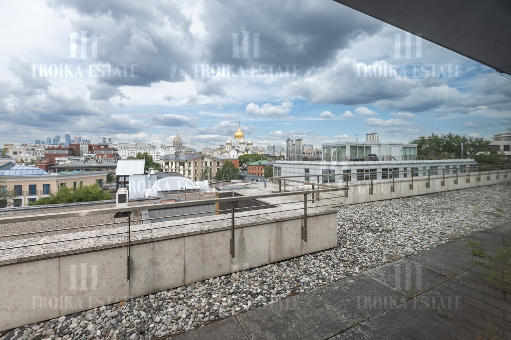 Предлагается к продаже просторный двухуровневый пентхаус с террасой. Планировка предусматривает 4 или 5 спален, кабинет, библиотеку, гостиную, кухню-столовую, 3 санузла. Пентхаус предлагается без отделки. Высокие потолки - 3,5 метра. Большая площадь остекления наполняет жилое пространство естественным светом. Прекрасные виды на Зачатьевский монастырь, Москва-Сити и исторический центр. Ориентация на 4 стороны. Площадь террасы 150 м2. Дополнительно можно приобрести 3 м/м.