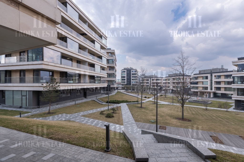 Мосфильмовская. На территории комплекса работает школа, фитнес-клуб, предусмотрен подземный паркинг.