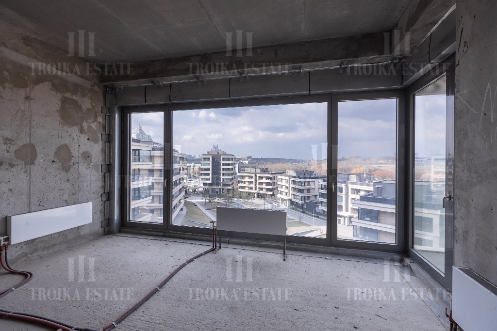 Многокомнатная квартира без отделки. Одна на этаже. Есть 2 балкона.