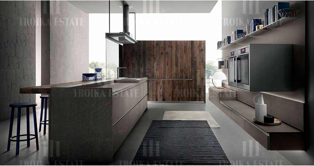 пространство кухню, гостиную и столовую суммарной площадью более 80 кв.м. В