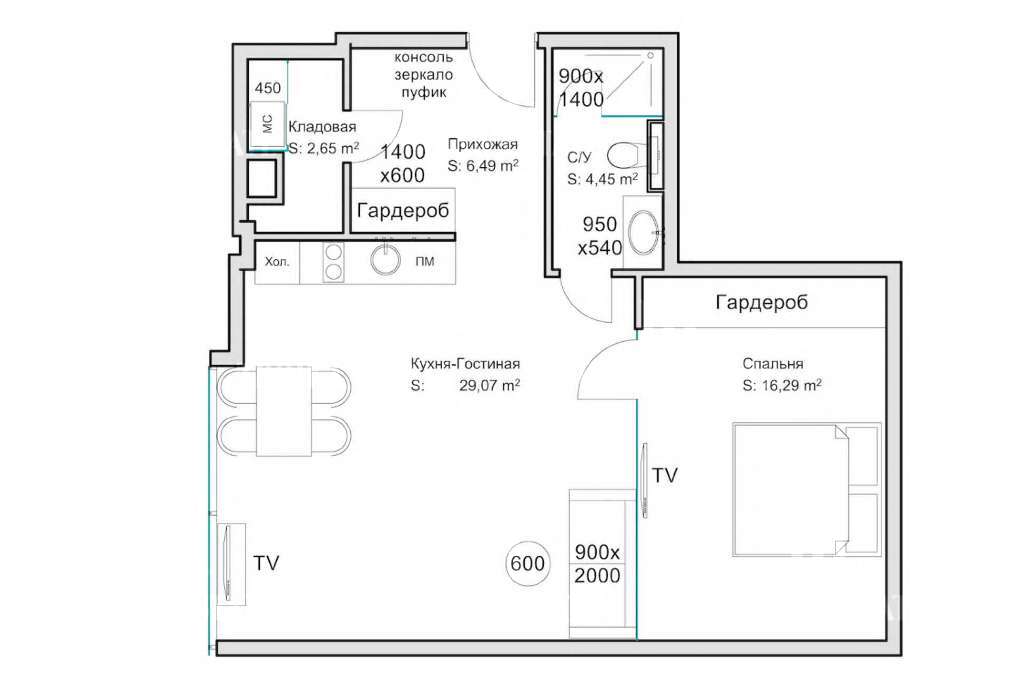 санузлом, гостиную с кухней, просторную спальню. Уникальной особенностью