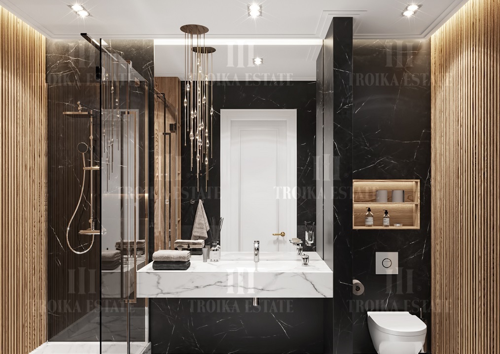 три спальни, каждая со своим санузлом и гардеробной, гостевой санузел,