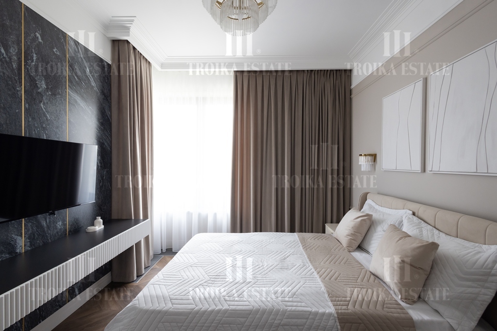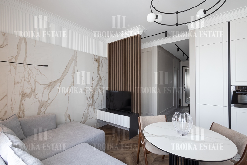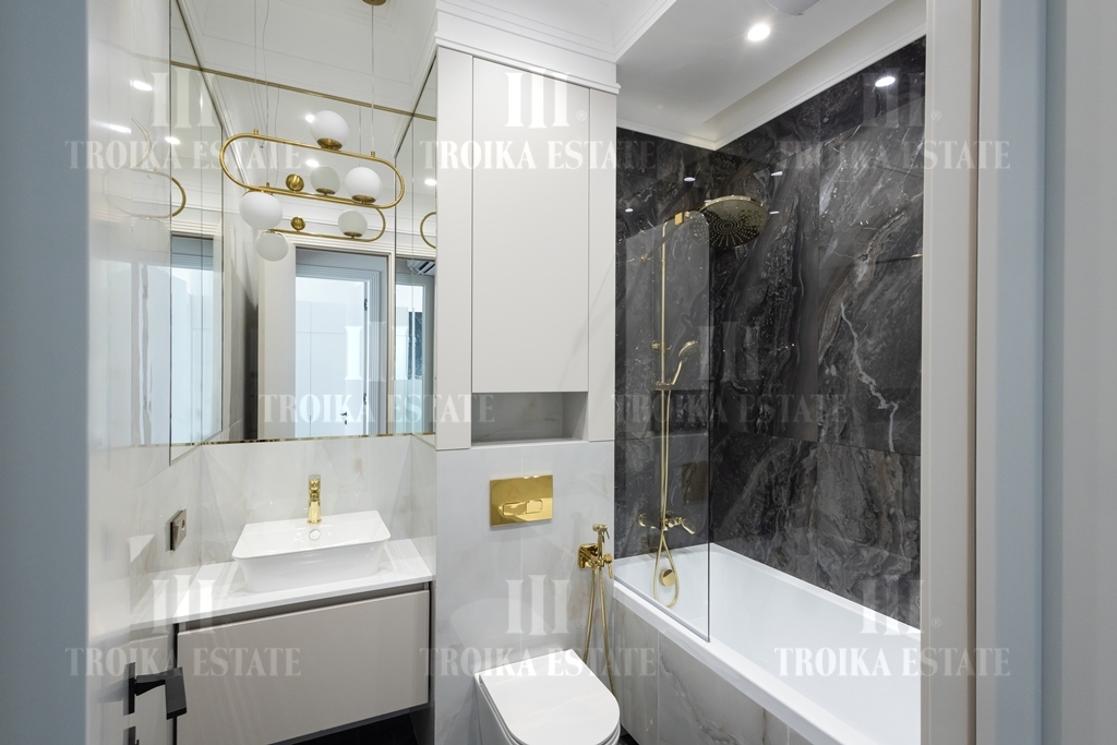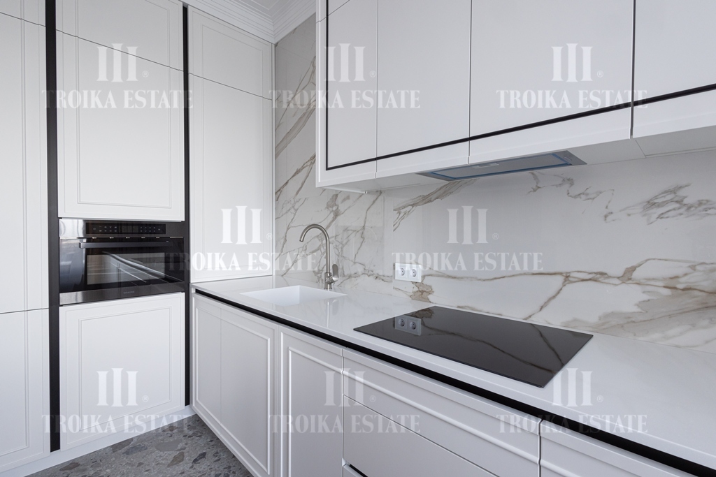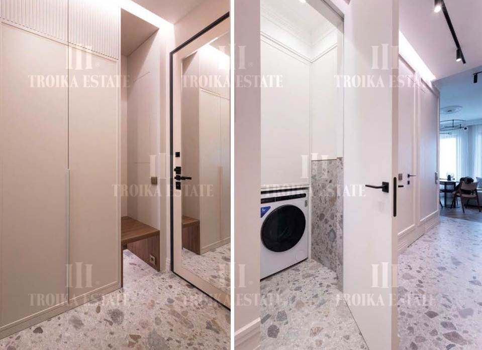 Новая трехкомнатная квартира европейского формата. Предлагается с высококачественной дизайнерской отделкой из премиальных материалов. Отделка выполнена под ключ. Установлена новая мебель, техника, полностью оборудованная кухня и санузлы. Подключен интернет. В прихожей и санузлах теплый пол. Планировочное решение включает две изолированные комнаты, кухню-гостиную, ванную комнату, гостевой санузел и постирочную.