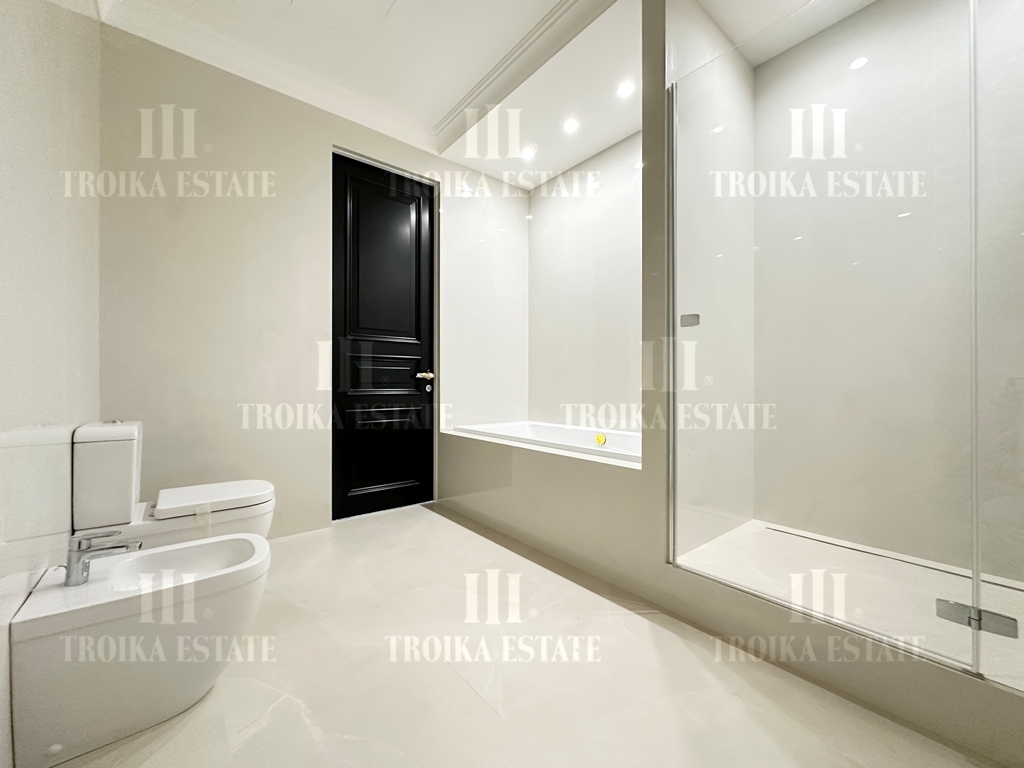 высокие двери сделаны на заказ. Ванные комнаты оборудованы сантехникой Grohe. В