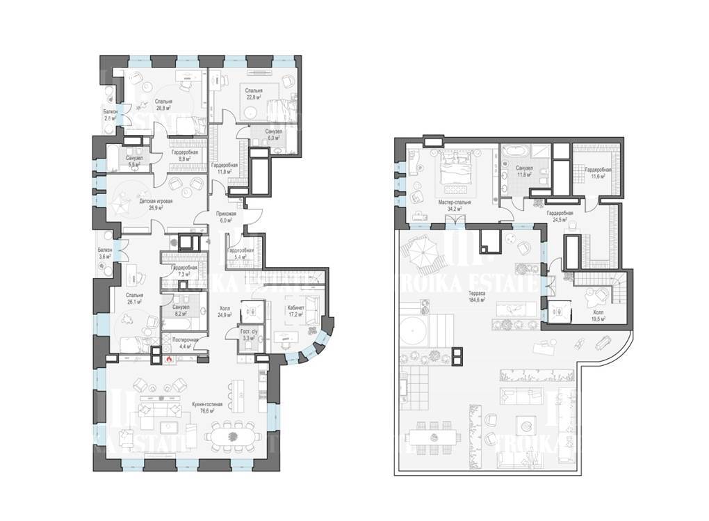 Роскошный пентхаус общей площадью 392,2 кв. м. расположен на