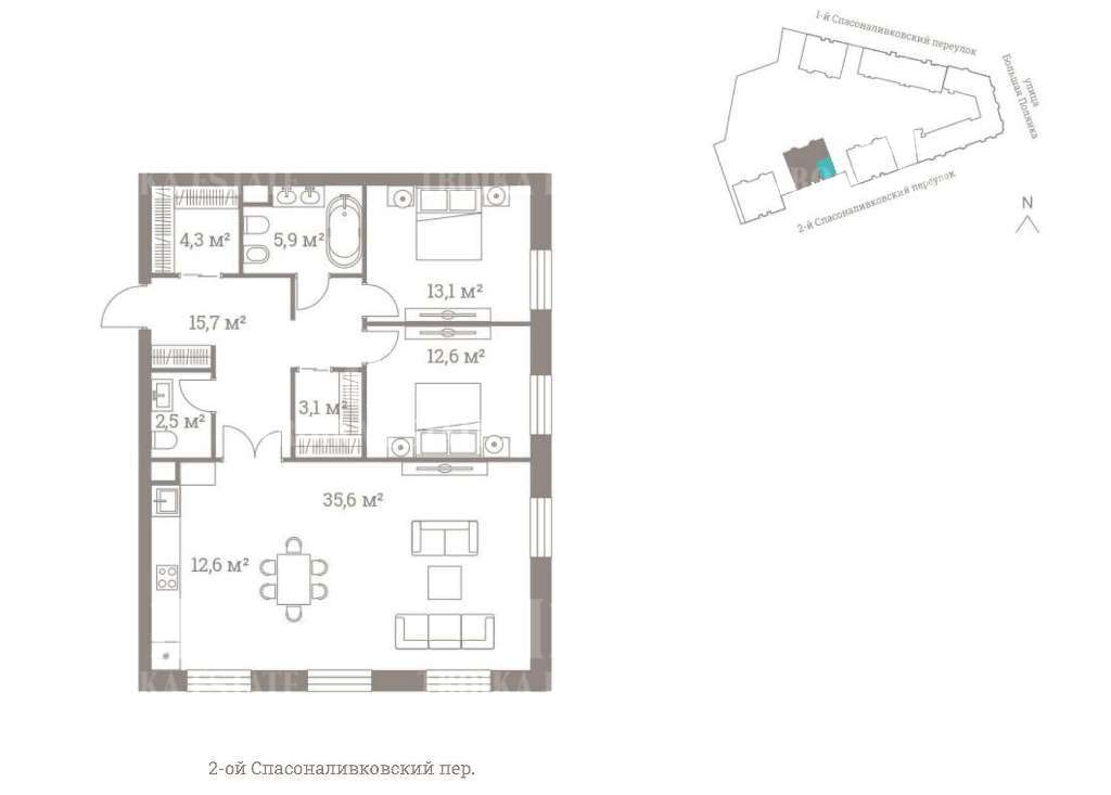 Трехкомнатная квартира в современном особняке Магнолия. Панорамные виды на 2-й Спасоналивковский переулок и внутренний двор. Предлагается под отделку. Угловая планировка предусматривает большую зону кухни-гостиной, 2 спальни с гардеробными, 2 санузла. Архитектурный комплекс из 8-ми особняков Полянка / 44 имеет общий закрытый двор-сад. Концепция ландшафтного дизайна объединяет детские площадки, зеленые аллеи и живописные лаунж-зоны. Ручей в центре сада привносит в проект атмосферу загородной жизни. Внутренняя территория комплекса свободна от автомобилей.