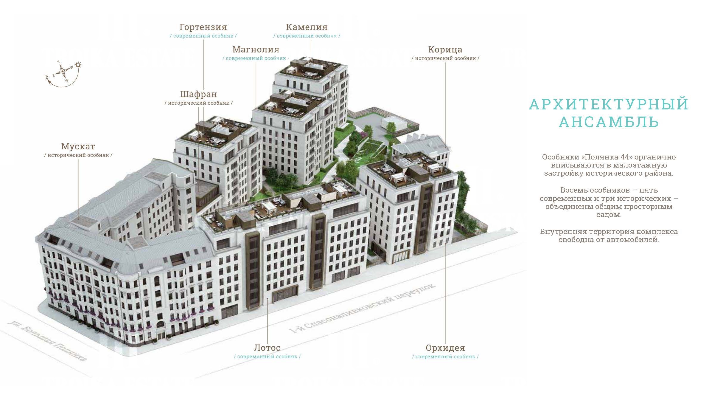 Архитектурный комплекс из 8-ми особняков Полянка / 44 имеет общий закрытый