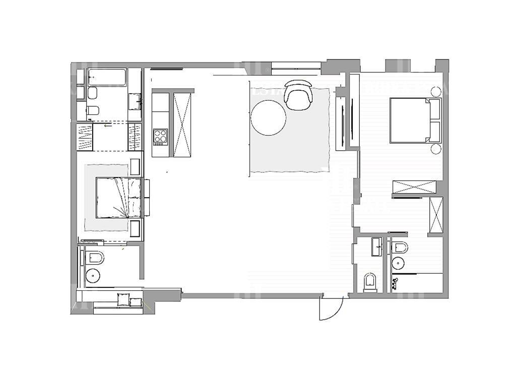 гостиная с кухней и обеденной зоной, гостевой санузел, кладовая. Апартамент