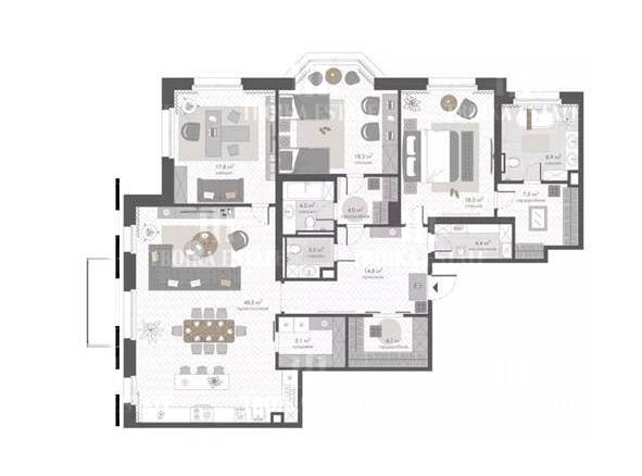 Видовая четырехкомнатная квартира с эркерным окном в спальне