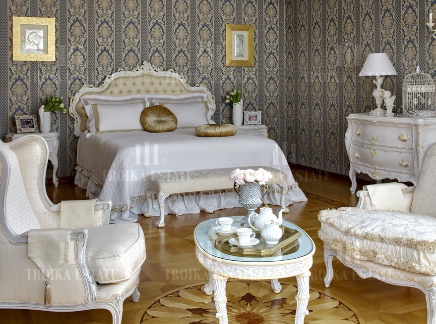 включает 4 спальни со своими гардеробными и ванными комнатами, кабинет, кухню,