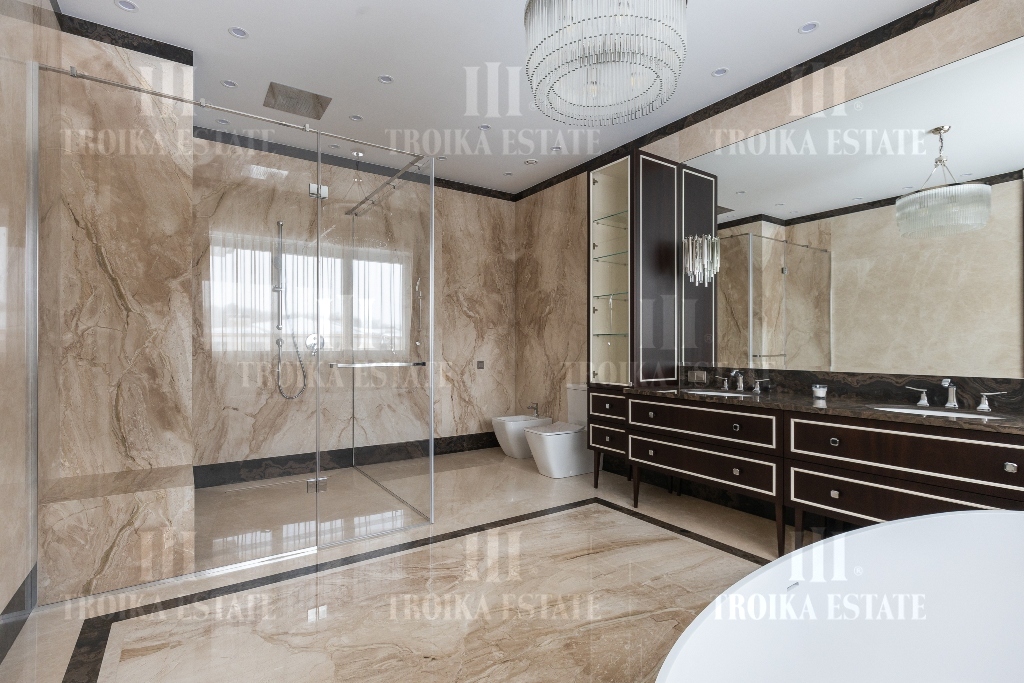 этаже: 3 спальни с ванными комнатами и гардеробными. На цокольном этаже