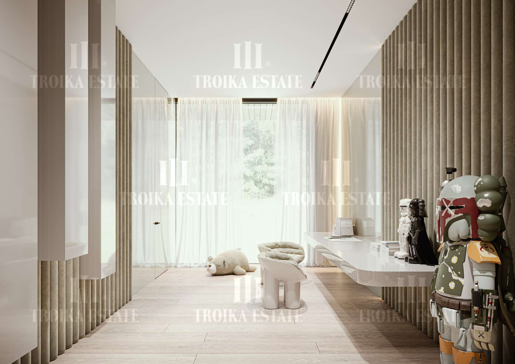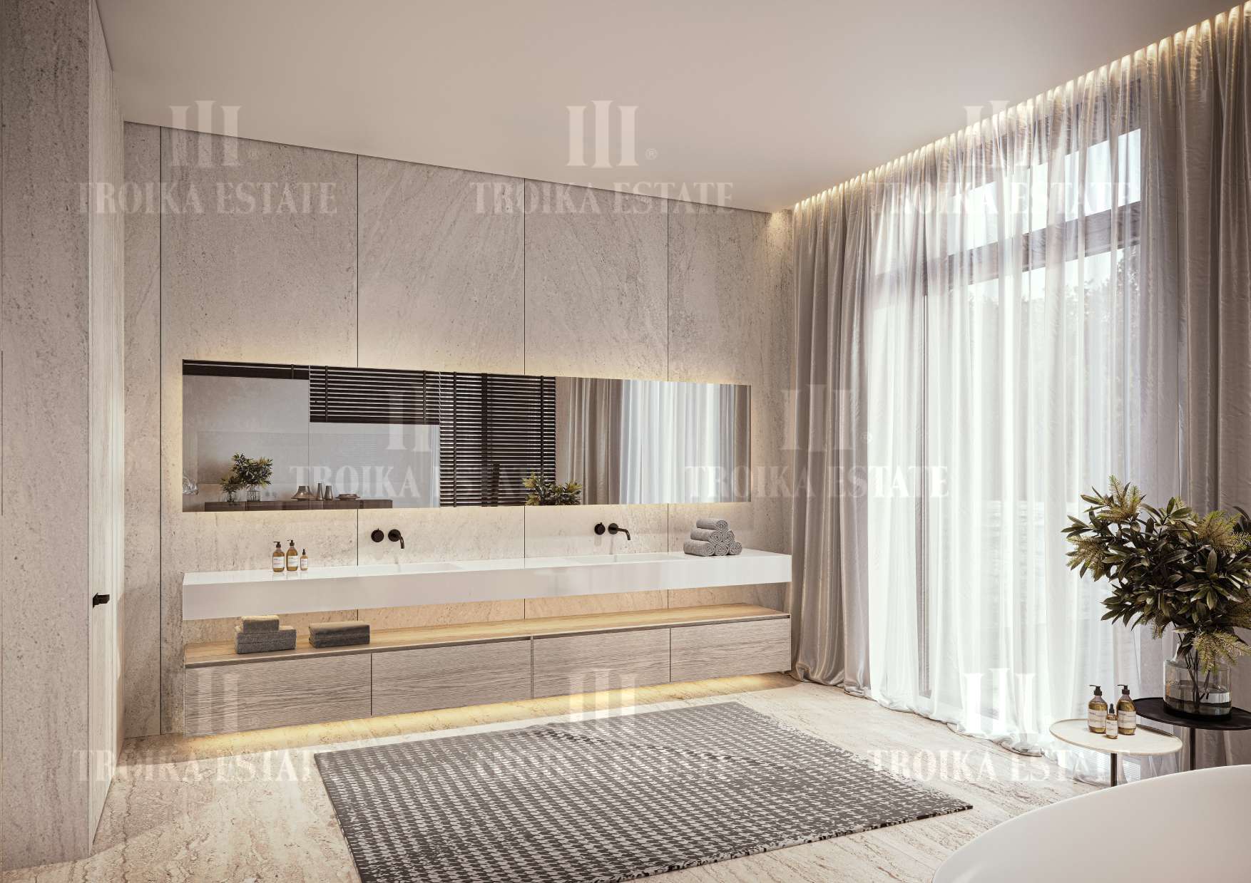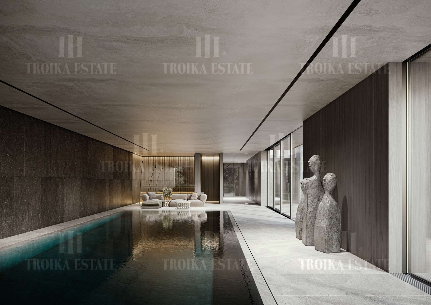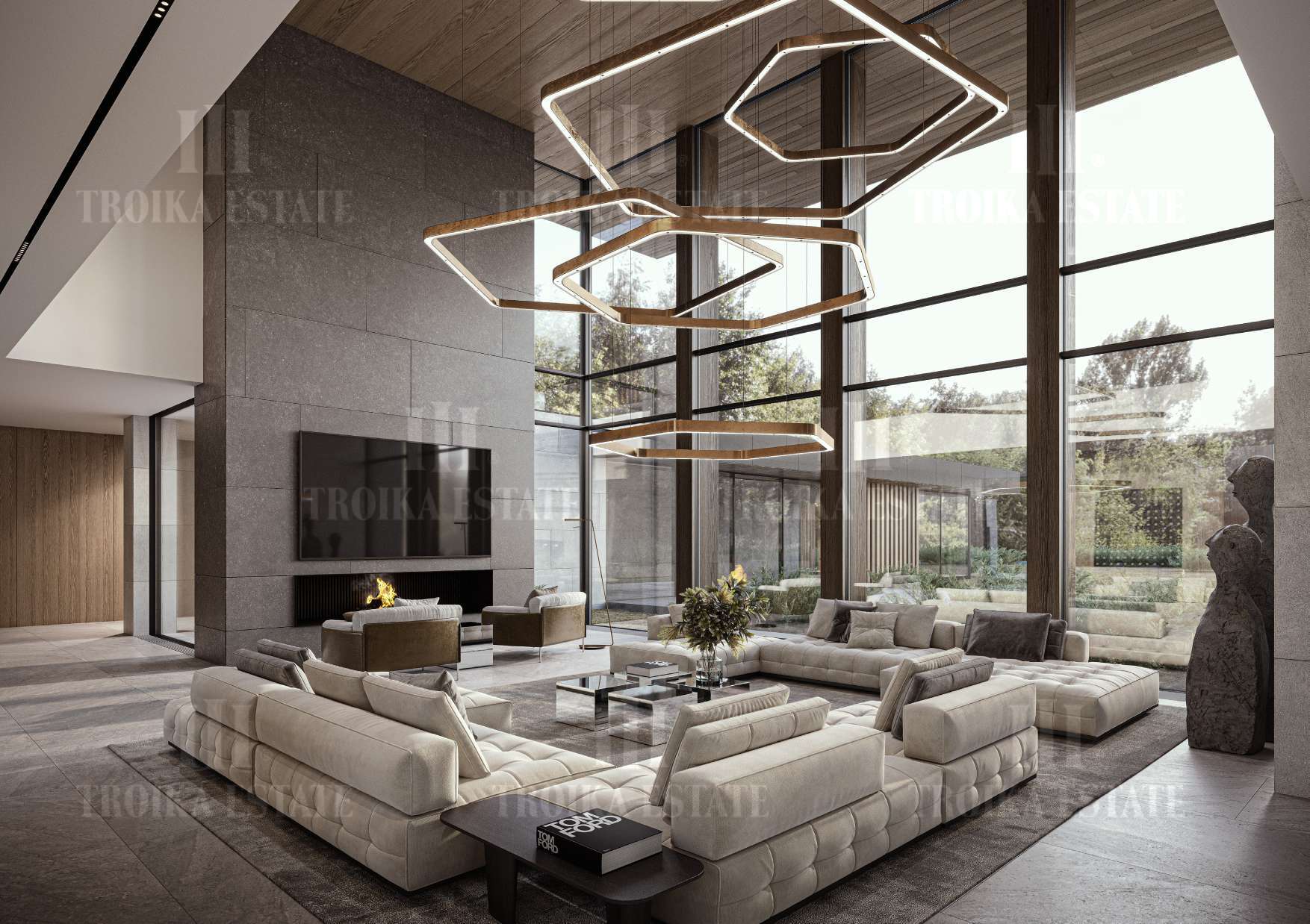 ванными комнатами, просторную двухсветную гостиную, SPA зону с бассейном и банями, паркинг на 5 м/м, комнаты для персонала. Большой участок позволяет создать уникальное ландшафтное оформление.