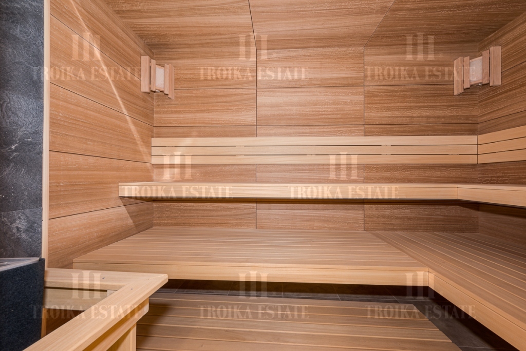 с санузлами, мастер-спальню с ванной комнатой, СПА зону с бассейном и банями,