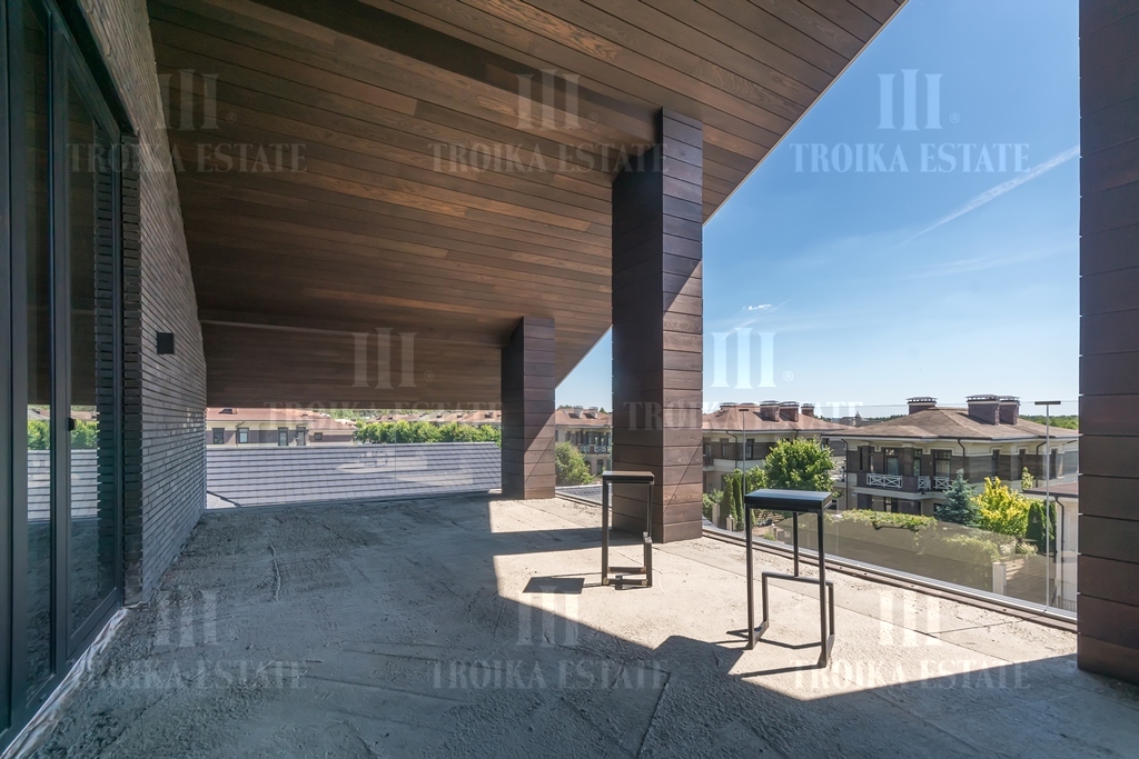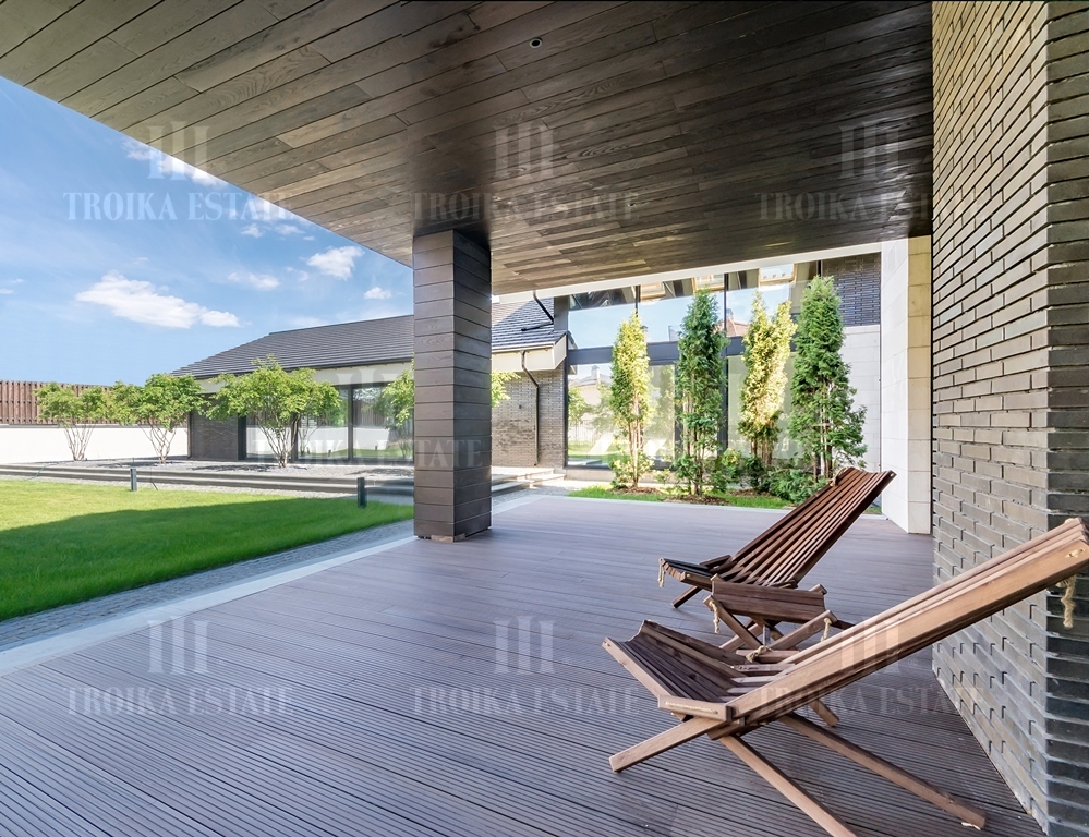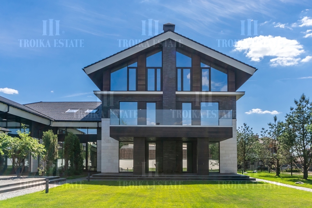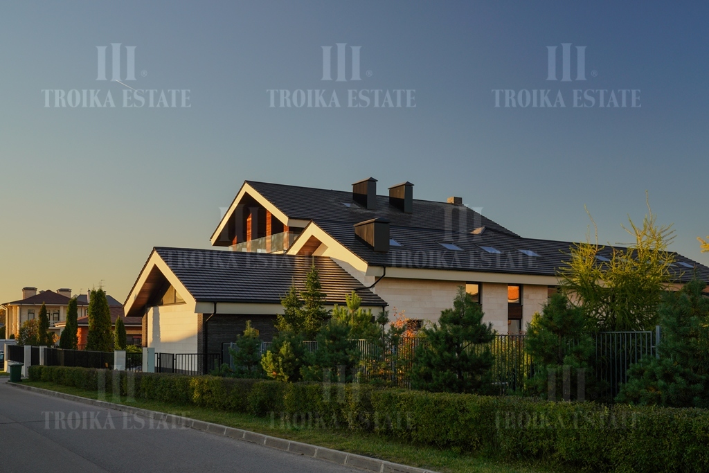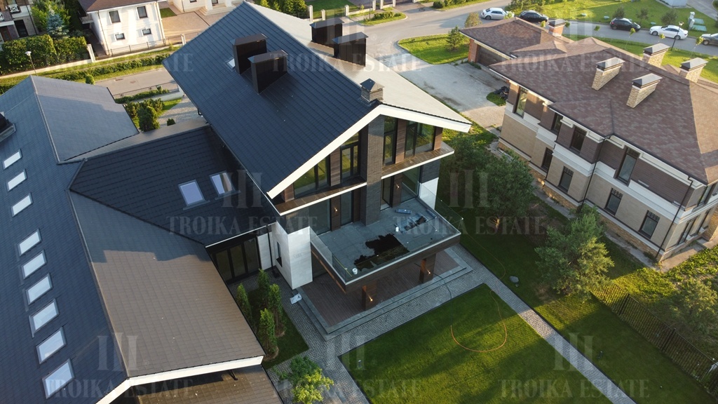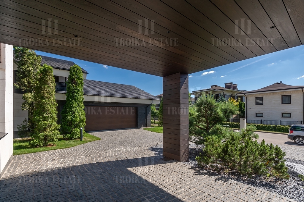 Современный дом под чистовую отделку продается в полностью застроенном коттеджном поселке премиального класса. Дом построен по индивидуальному проекту с использованием качественных натуральных материалов: натуральное термообработанное дерево Ясень Канадский, клинкерный кирпич Muhr ручной формовки, натуральный белый мраморизованный камень Montenegro Limestone. Панорамное остекление - система Schuco. Дорожки выложены гранитной брусчаткой Габбро, с возможностью подогрева. Выполнены ландшафтные работы с озеленением, подсветкой и дренажной системой. В доме 4 уровня. На первом уровне располагается СПА зона с бассейном и банями (хамам, сауна), гостиная, столовая, гараж на 3 а/м. На втором, жилом этаже дома, расположены 4 спальни, рядом с которыми оборудованы ванные комнаты. Из каждой спальни можно выйти на балкон или террасу. На третьем этаже находятся две видовые спальни, оборудованные ванными комнатами. Внешние стены спален полностью выполнены из стекла и дополнены открытыми террасами. На цокольном этаже дома можно разместить кинозал и бар с мини-кухней.