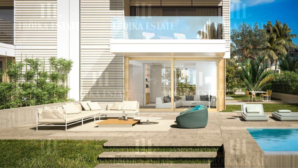 Дом "под ключ" в уникальном клубном поселке в 20 км от Барселоны. Поселок расположен на первой линии Средиземного моря, в 50 метрах от пляжа, и расчитан на 12 владений. В доме выполнена качественная отделка. Кухня укомплектована бытовой техникой. Санузлы укомплектованы сантехникой. Планировкой предусмотрено 5 спален, гостиная, кабинет, кухня, 5 санузлов. Из главной спальни выход на открытую террасу с мини-бассейном. Кроме того, есть большой бассейн на прилегающем участке. В доме есть лифт, система отопления и кондиционирования, фасадная подсветка. Встроенный гараж на 2/м.